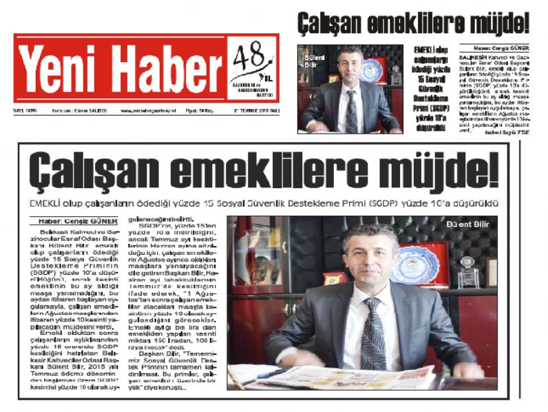 YENİ HABER GAZETESİNDEKİ HABERİMİZ