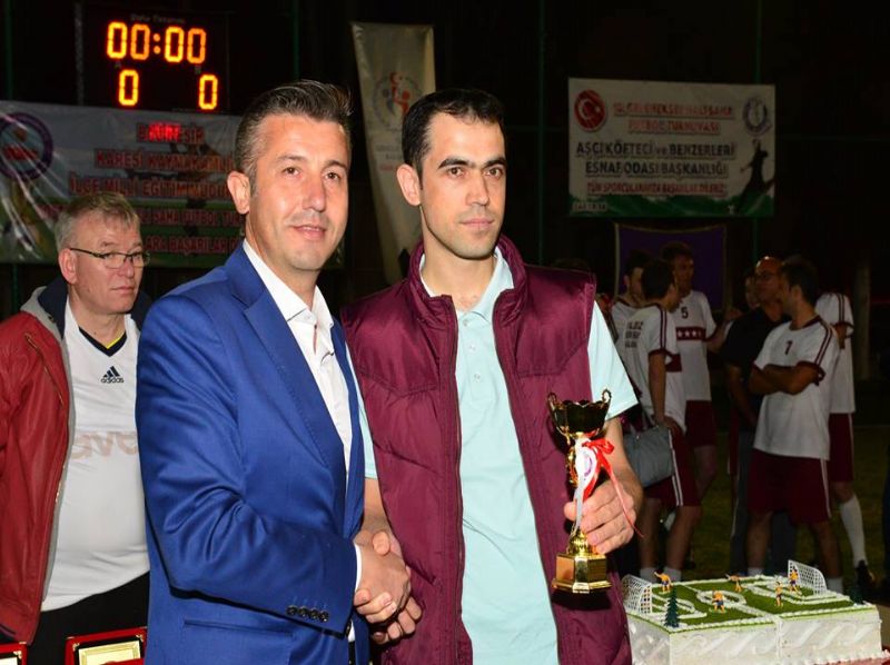 Lokantacılar Odasının futbol final turnuvasına katılan Başkanımız Bülent Bilir en centilmen takım olan Keyif Aile Lokantasını kupasını takdim etti.